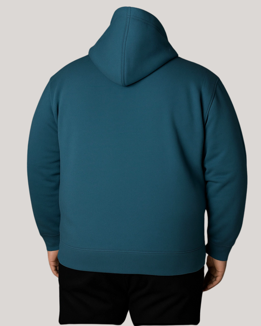 Moletom masculino plus size com zíper frontal, capuz com cordão ajustável e bolso canguru. Ideal para dias frios, combina conforto, estilo e praticidade.