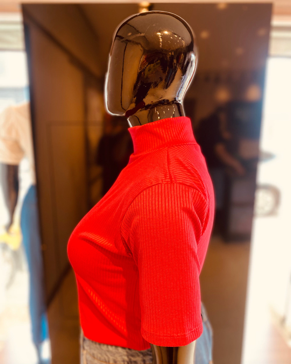 Não perca a chance de adicionar essa peça essencial ao seu guarda-roupa! Garanta já a sua Blusa Canelada Premium de Gola Alta Manga Curta e transforme seu look!
