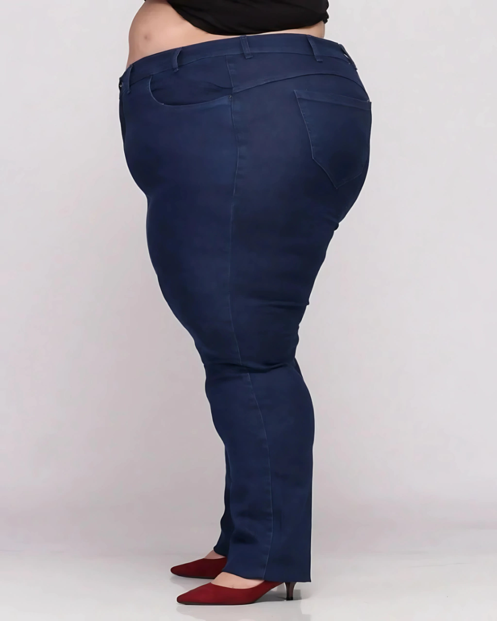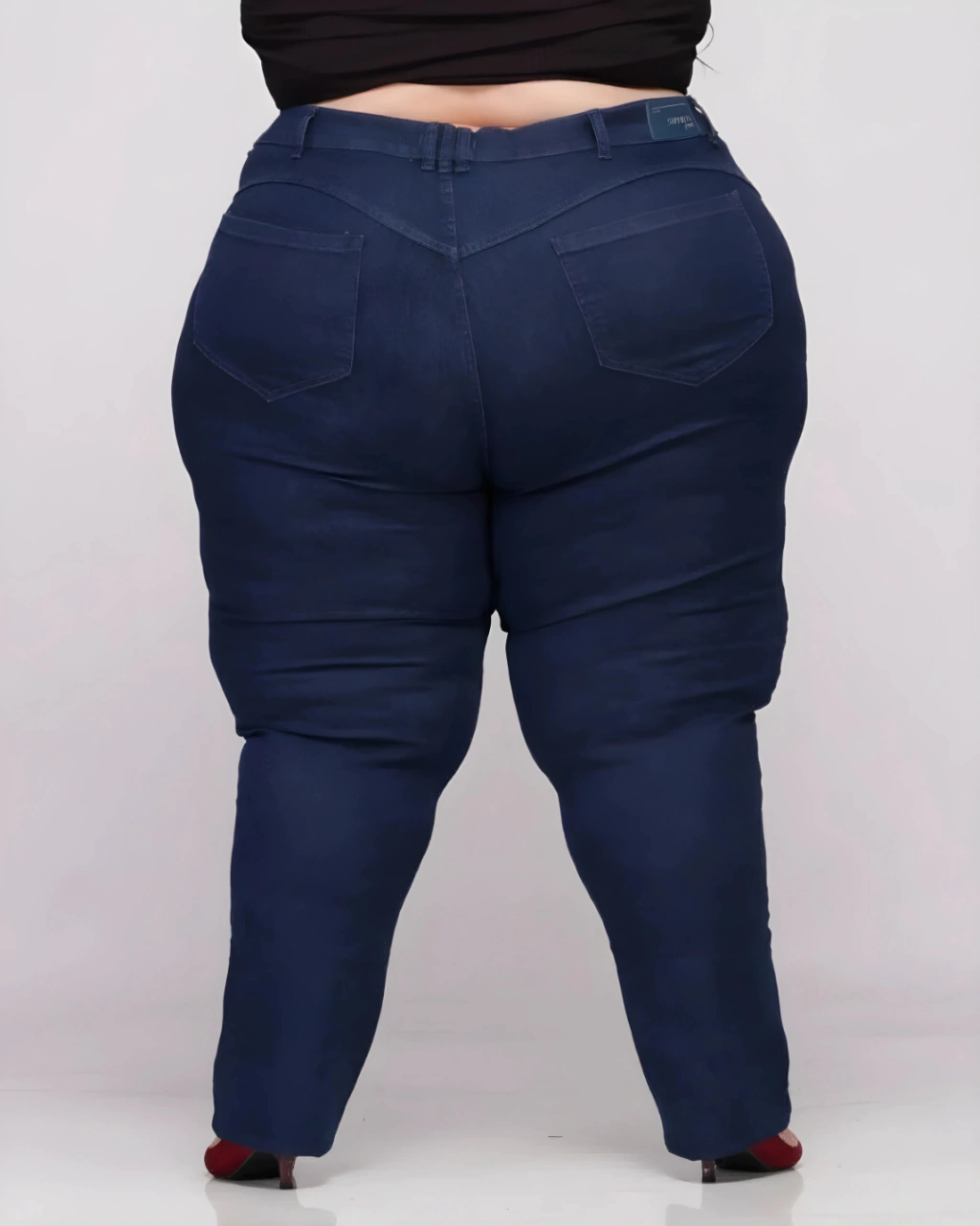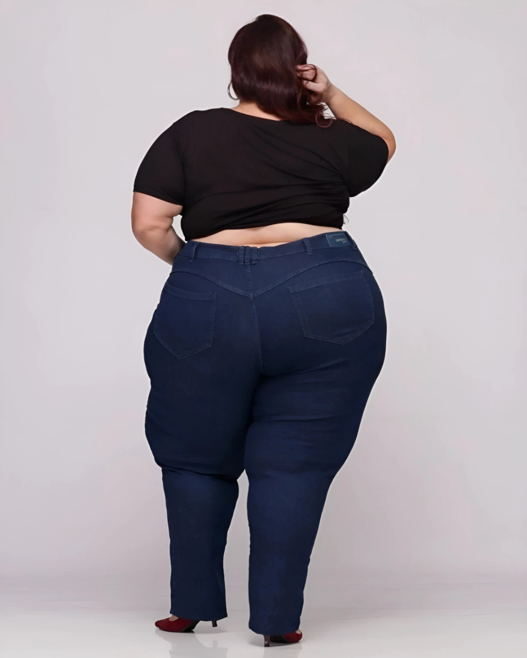 Confeccionada em jeans de alta qualidade, com elastano que garante conforto, flexibilidade e um ajuste perfeito ao corpo.