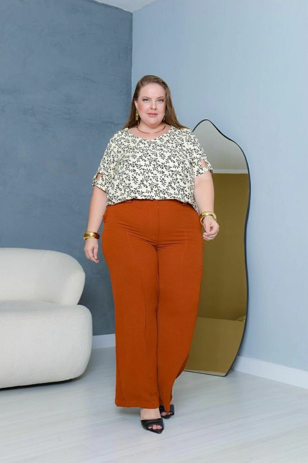Modelagem pantalona: Ampla, estilosa e com um caimento que valoriza real.