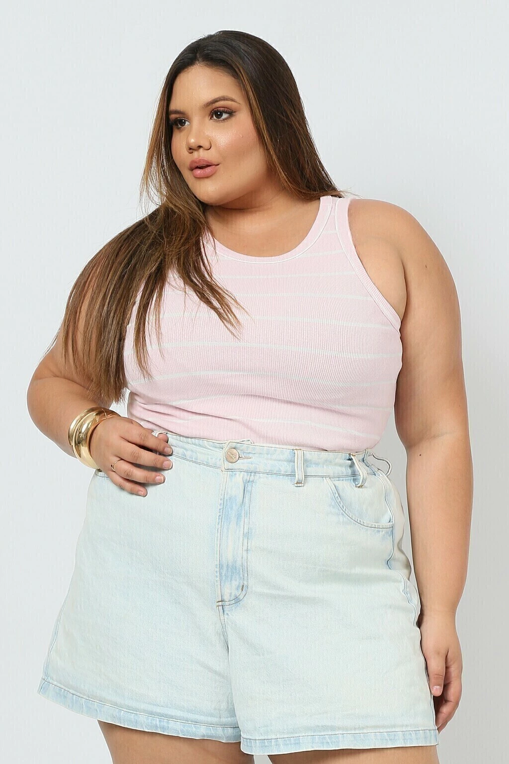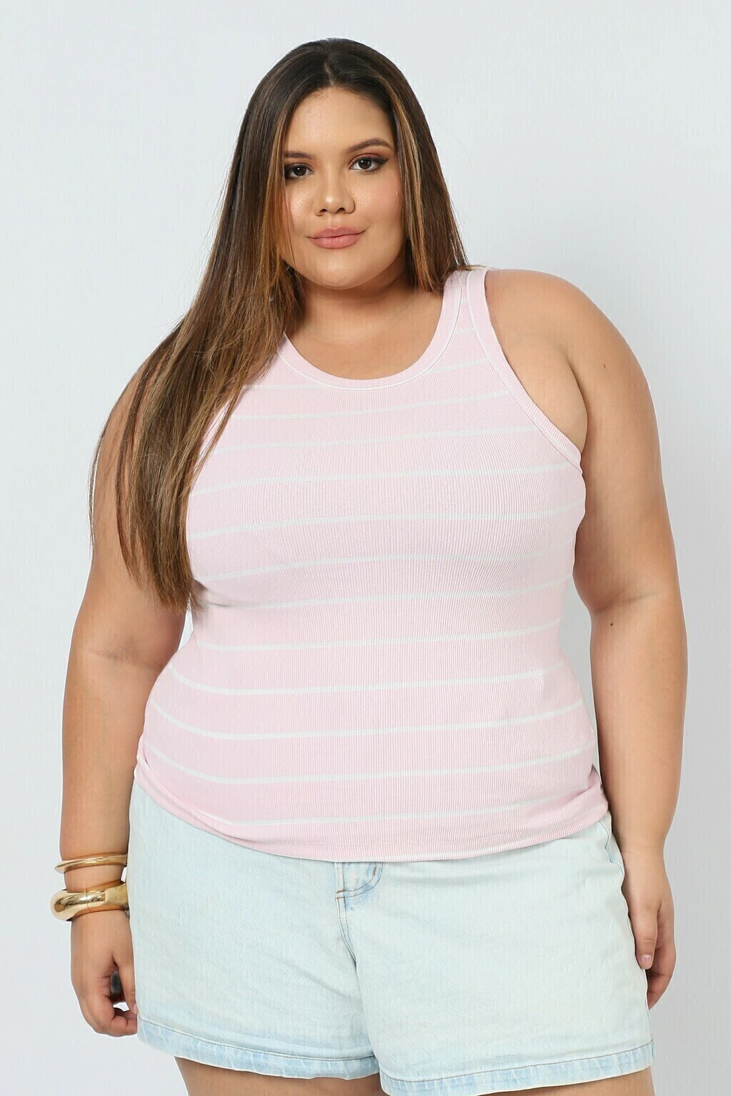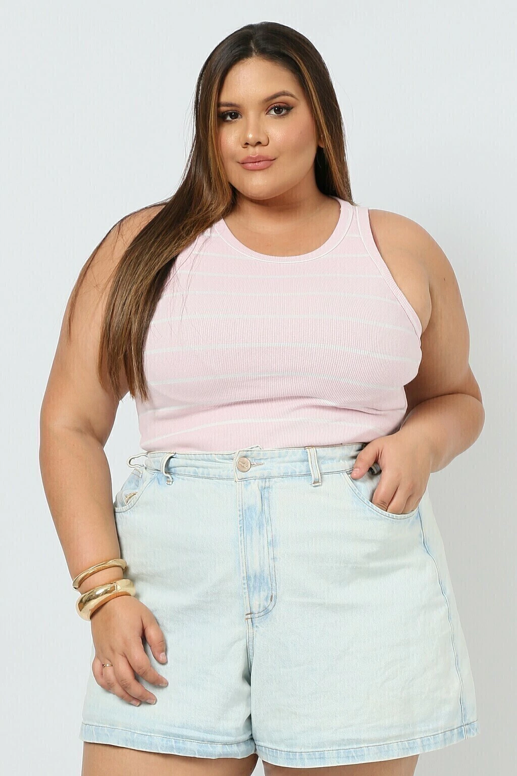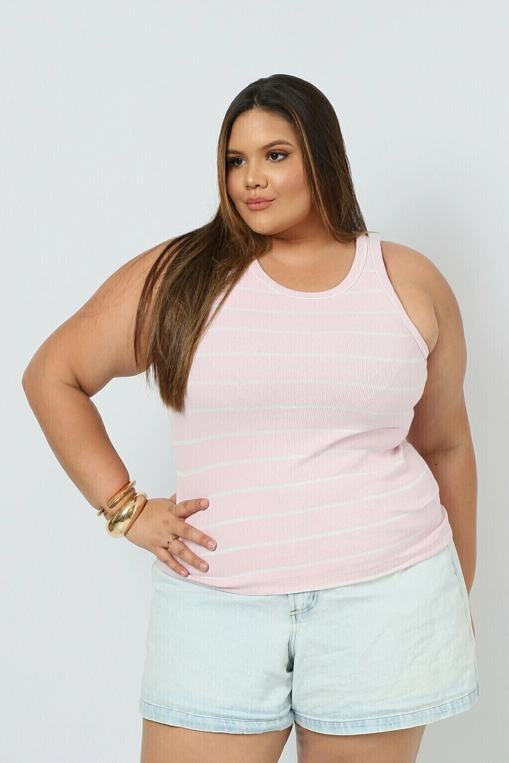 Feita de um tecido canelado, que tem umas listras em relevo e é composto de algodão e elastano. Esse tecido é confortável, respirável e se ajusta ao corpo, tem um corte sem mangas e uma gola redonda proporcionando um caimento perfeito e um toque suave na pele.