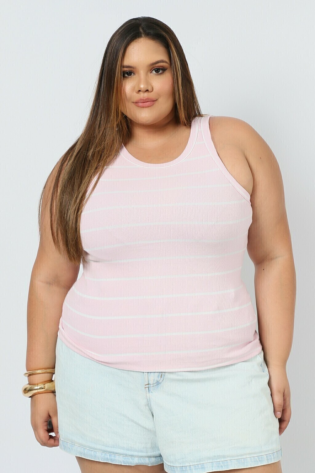 Seja elegante com esta regata ribana Estação Plus Size!